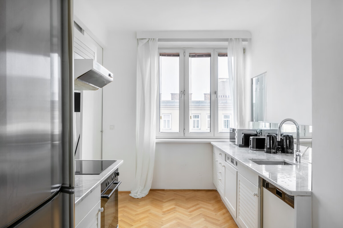 Diese elegante Wohnung liegt im 7. Stock (Aufzug vorhanden) eines 11-stöckigen Hochhauses und begeistert mit attraktivem Fernblick in Richtung Donaukanal und Prater. Die 67 m² Wohnfläche teilen sich optimal auf einen Vorraum (ca. 8 m²), eine Küche (ca. 9 m²), zwei getrennt begehbare Zimmer (ca. 22 m² und 21 m²), ein Badezimmer mit Waschmaschinenanschluss (ca. 4 m²) und ein separates WC (ca. 3 m²) auf. Die Räume sind Richtung Osten ausgerichtet und daher sehr hell und lichtdurchflutet. Ein weiteres Highlight dieser Immobilie ist die riesige Dachterrasse zur allgemeinen Mitbenutzung oberhalb des 11. Obergeschosses, die einen herrlichen Panoramablick über Wiens Zentrum inklusive einigen baulichen Sehenswürdigkeiten wie dem Stephansdom bietet. Die Anbindung an den öffentlichen Verkehr ist aufgrund der zentralen Lage exzellent (U1/U4 Schwedenplatz und Straßenbahnlinie 1 und 2 in unmittelbarer Nähe).
